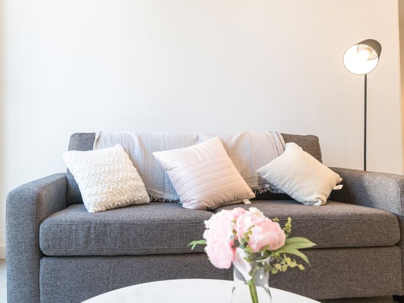 - The apartment comes complete with a stylish sofa and coffee table for your comfort.