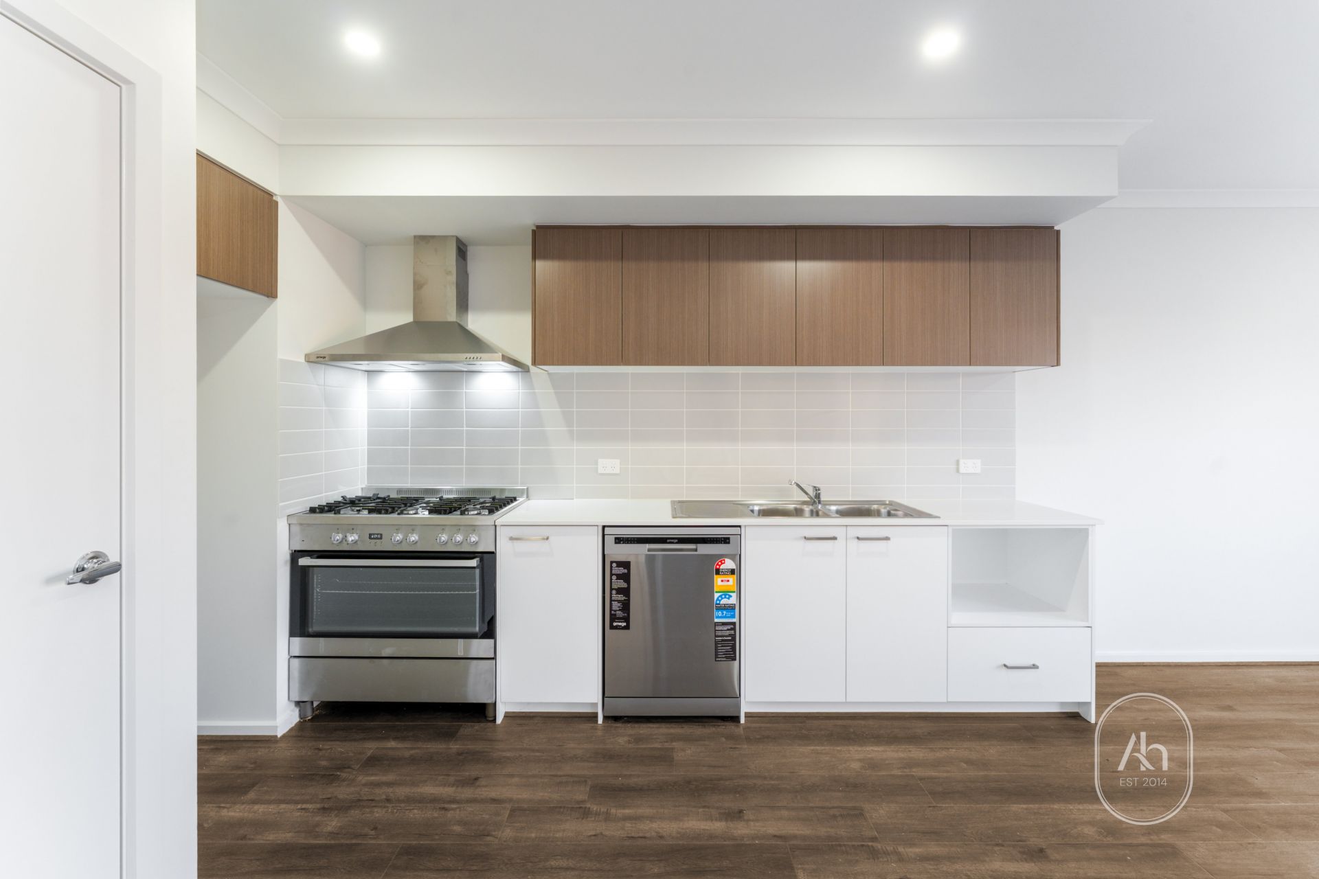 At the heart of the home, the open-plan kitchen, living, and dining area is filled with natural light, creating a welcoming space for relaxing or entertaining. The kitchen is fitted with quality appliances, sleek cabinetry, and plenty of bench space, making meal prep a breeze.