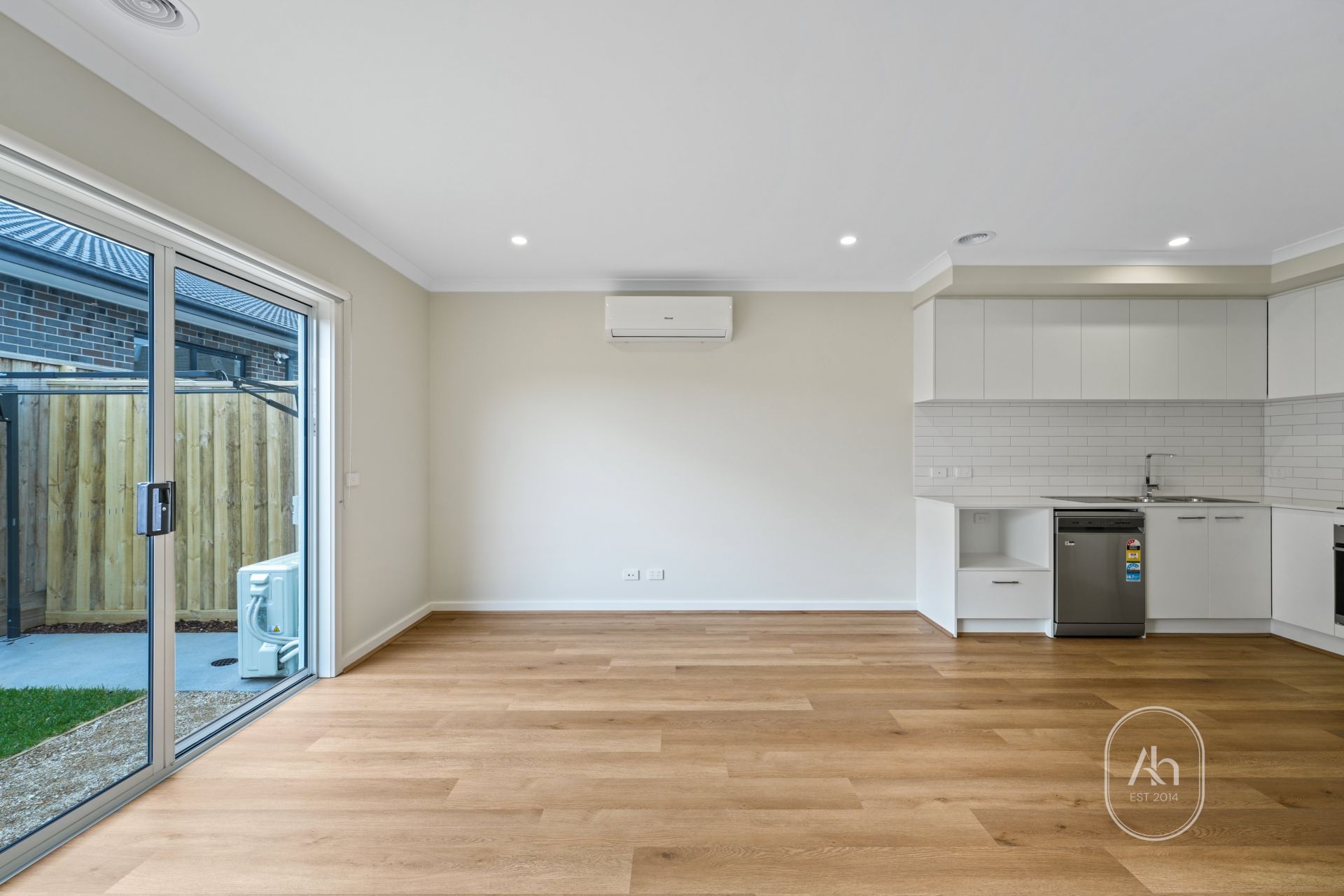 The light-filled open-plan living and dining area provides the perfect setting for everyday living and entertaining. The contemporary kitchen features quality appliances, ample cabinetry, and a generous benchtop design, making meal preparation both practical and enjoyable. A split system in the living room ensures comfortable heating and cooling all year round, complemented by ducted heating throughout the property.