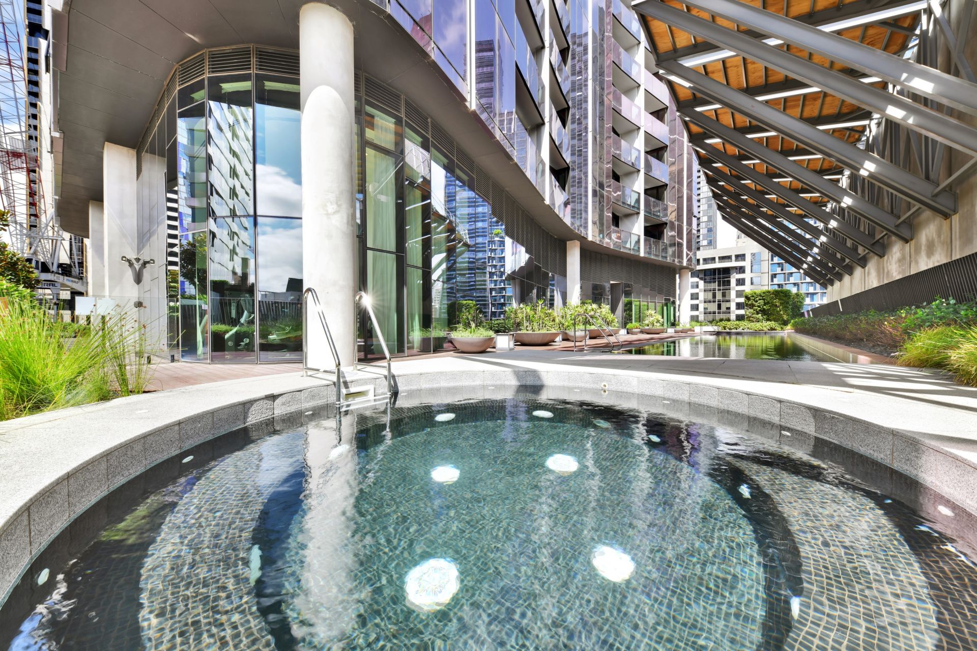 The building offers residents facilities which include a pool, spa, gym and recreation area, garden retreat, poker room, communal lounge, communal kitchen and dining, library and business centre, and cinema.