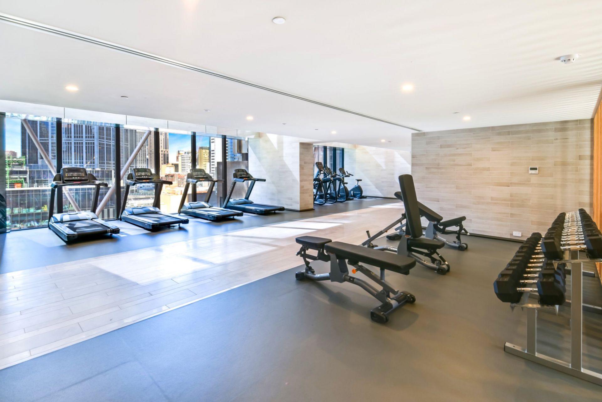The apartment features a generous open-plan living and dining area, complemented by a contemporary kitchen equipped with quality appliances, stone benchtops, and ample storage. Floor-to-ceiling windows allow abundant natural light and showcase impressive city views, creating a bright and welcoming living environment.