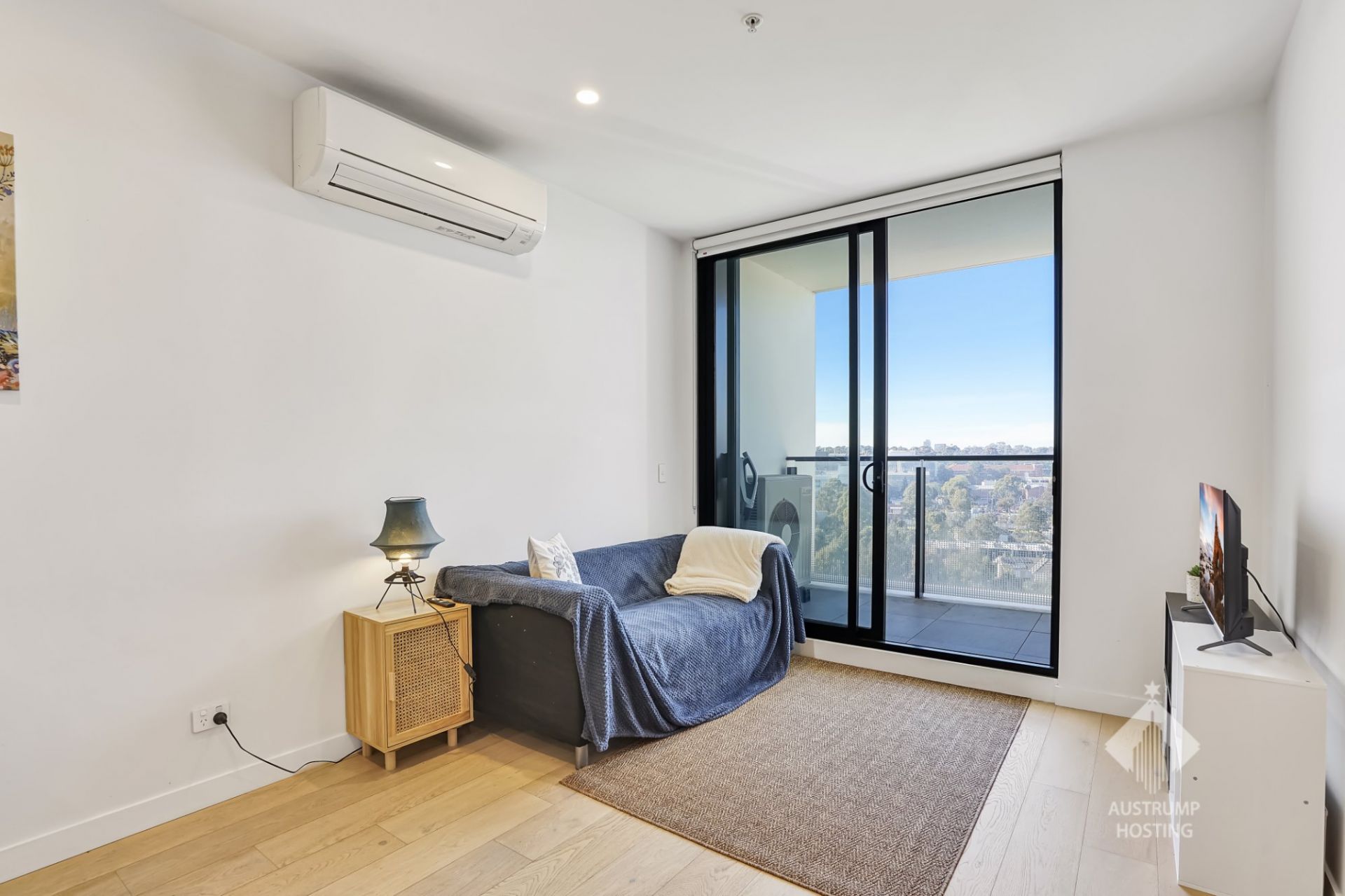 • Spacious open plan living room connected to private balcony with district views